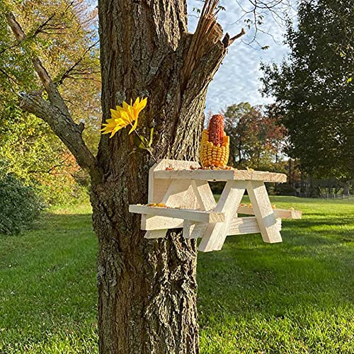 Specification: Eekhoorn Feeder, eekhoorn picknicktafel Feeder met maïskolven houder, eekhoorn geschenken voor buiten, grappige duurzame eekhoorn benodigdheden