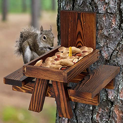Eekhoorn picknicktafel feeder, met maïskolf houder, hangende voedsel feeder, eenvoudig te installeren, geschikt voor tuinen, bomen, hekken