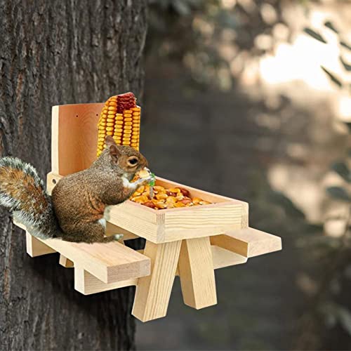 Specification: Eekhoornvoeders voor buiten Grappig – Buiten massief houten eekhoorn tafelvoeder,Eekhoorn feeder verhoogde rand voor fruit noten en minder afval