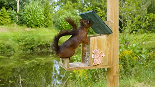 Met eekhoorn terras met guard rail aan de voorzijde – om te helpen bij het openen van de feeder