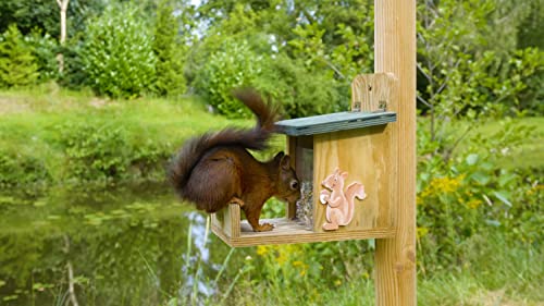 Met eenvoudig scharnierend deksel als een ingang voor eekhoorns om te eten en voor praktische reiniging
