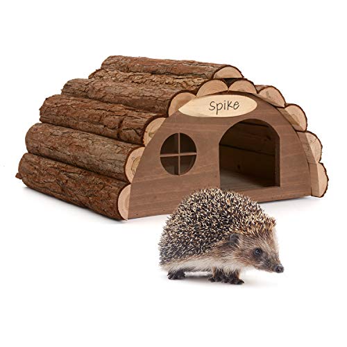 Kan ook worden gebruikt als decoratief huis voor cavia’s in een vrijloophok. Het egelhuis is gemaakt van hout en grenenhout en beschikt over een gewelfd dak, zodat het water kan weglopen. Afmetingen: 33,5 x 34 x 19 cm. Met natuurlijk egelhuis van hout met een dak van haardhout. Naamplaatje voor het schrijven van een naam Dubbele diepte van een normaal egelhuis.