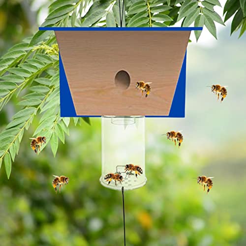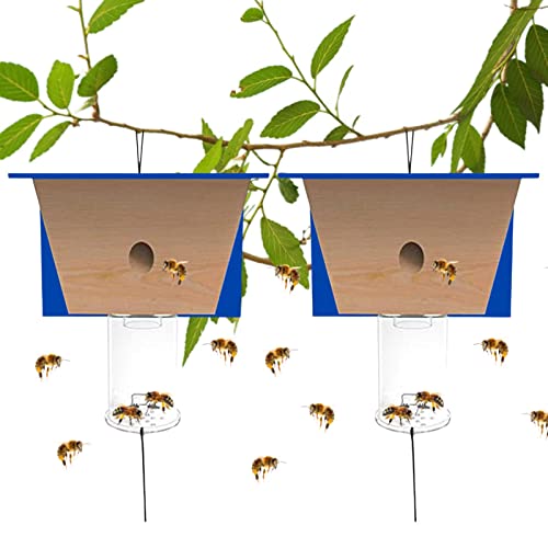 SYNYEY Bijenvallen met chaletontwerp – duurzame houten insectenval voor het ophangen van buiten herbruikbare horzels val, herbruikbare wespenval insectenvanger voor buitentuin opknoping A/a