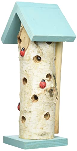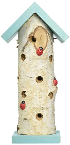 Specification: Dehner Natura Lieveheersbeestjeshuis Ladybird, Ø 10 cm, hoogte 24 cm, berkenhout, turquoise/beige