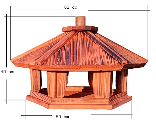 Specification: Vogel voer huis maat XXL, vogelhuis hout, vorm: zeshoekig