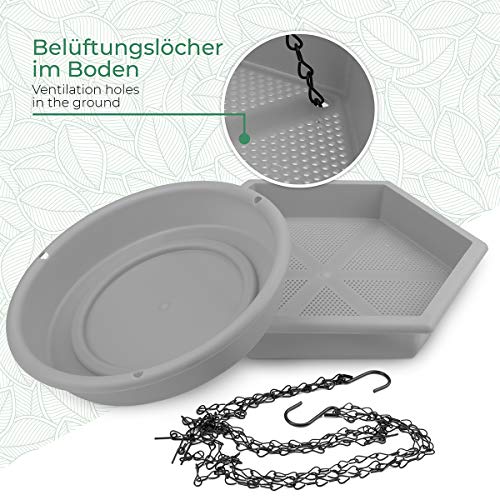 WILDLIFE FRIEND Set van 2 vogelvoederdispensers om op te hangen (32 x 28 x 5 cm, diameter 25 cm), XL voederstation voor grote vogels in de tuin, balkon, vorstbestendig, hangend voor wilde vogels in de tuin, grijs